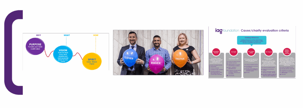 Working through our Framework process, we analysed and refined the IAG and Foundation purpose (community resilience), their brand spirit (Closer, Braver, Faster) and culture. We conducted external research to identify current community concerns and desires. All of these became our Guiding Influences for the Foundation.