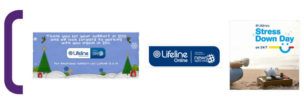 An additional partnership that we brokered two years later (Newscorp with Lifeline Australia – see media icon) promoted the partnership widely both through traditional and digital channels.