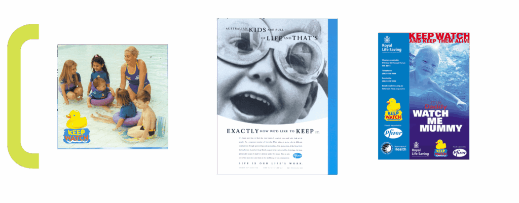 The communications program included RLSSA community service announcements (CSA’s) branded with both Pfizer and RLSSA. Pfizer produced and distributed 350,000 brochures and posters to GP’s & pharmacies throughout Australia, as well as child-care centres, hospitals and swimming centres. A CD Rom was developed and distributed to 8,000 health nurses. An information cassette was placed in Bounty bags for new mums, and Mother & Baby and Parents magazines ran advertorials. Remember this was all before digital media!